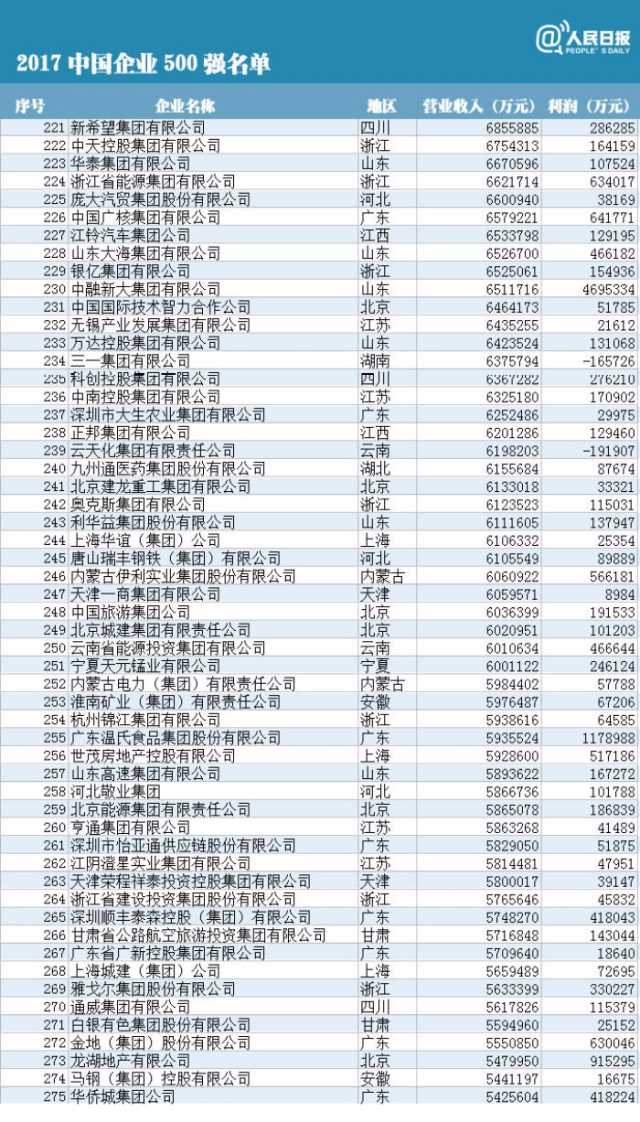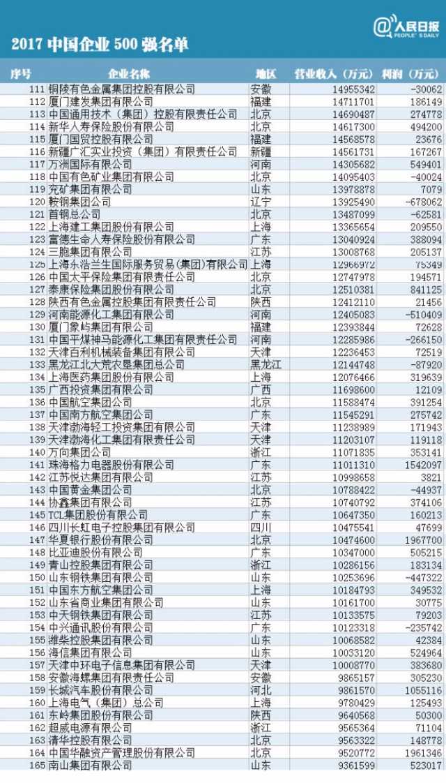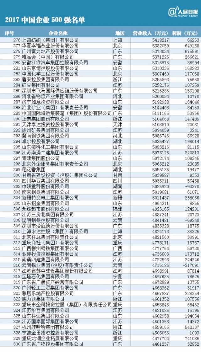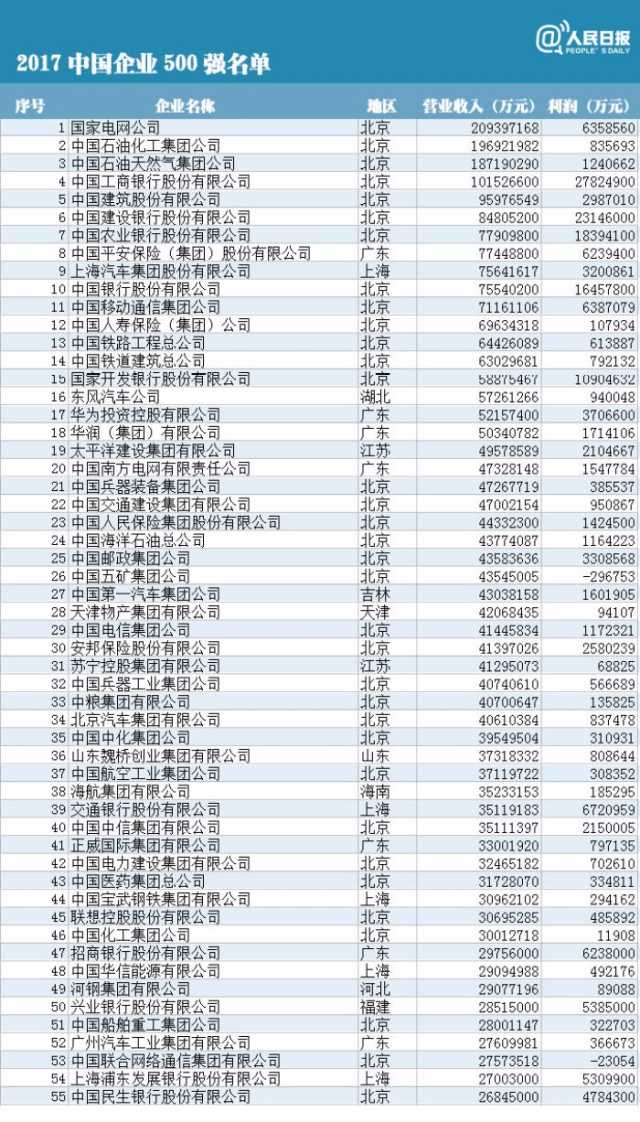 附中國企業(yè)500強(qiáng)榜單(制圖:人民日報(bào)微博)