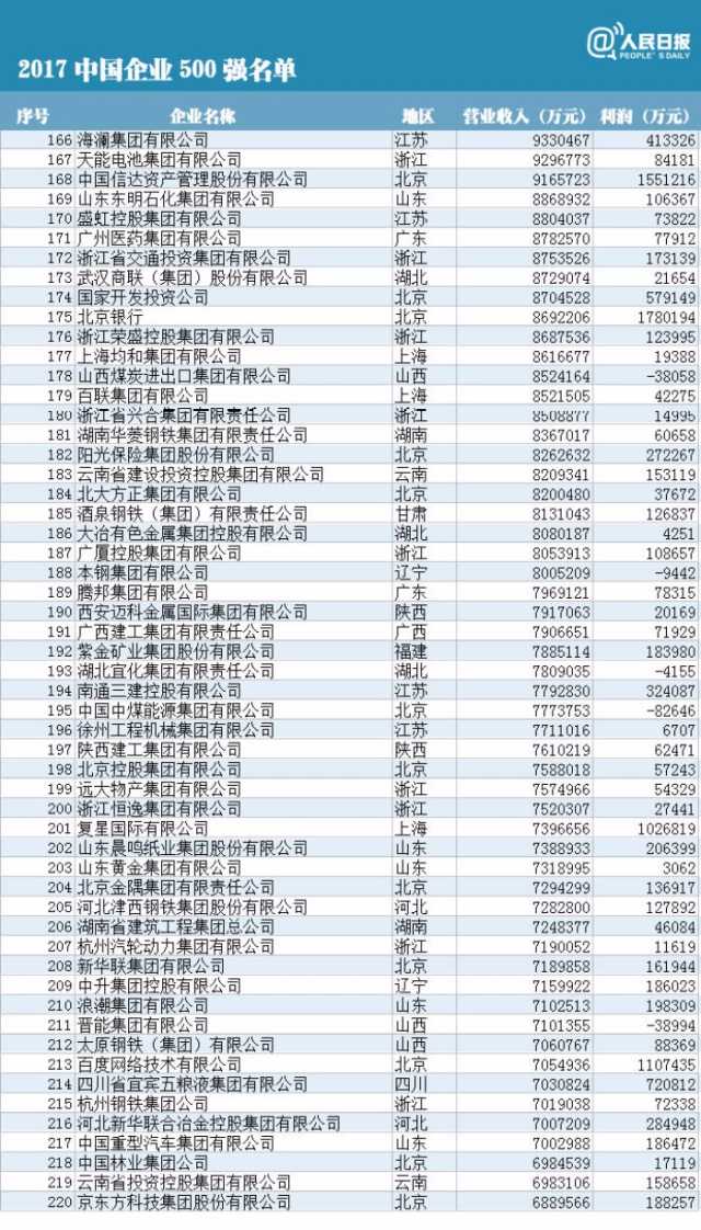 2017中國企業(yè)500強(qiáng)的入圍門檻為營業(yè)收入283.11億元,達(dá)到歷史新高,較上年大幅提高了39.65億元,提高幅度是自2002年發(fā)布中國企業(yè)500強(qiáng)以來以來最大的。