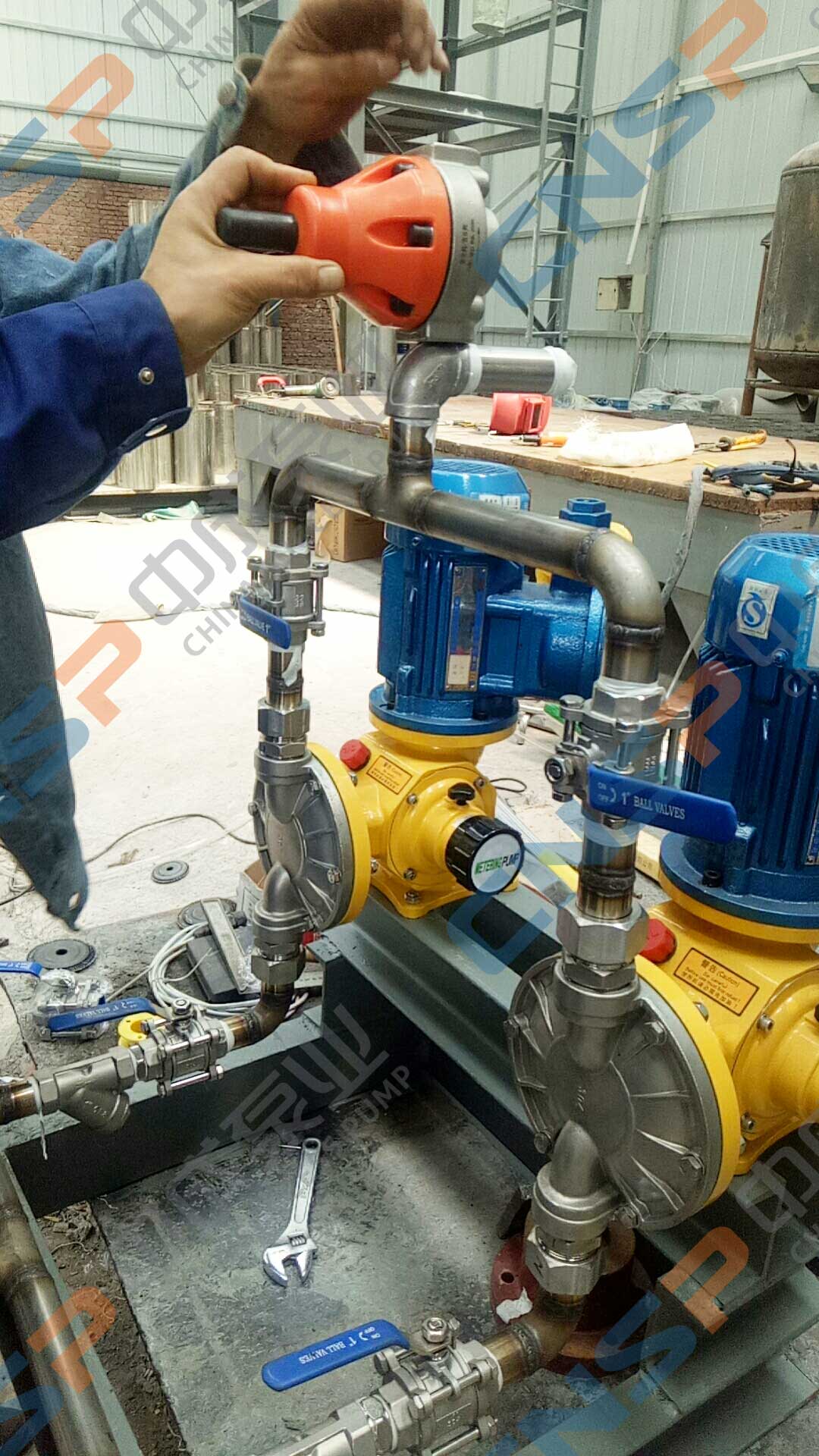 河北某節(jié)能技術(shù)公司是我廠長期合作伙伴,近期在我廠采購一批計量泵,型號為GM-500/0.5,我方指導(dǎo)客戶安裝以保證客戶的設(shè)備從開機(jī)調(diào)試起正常運行。中成泵業(yè)經(jīng)考驗的項目管理體系及豐富的安裝經(jīng)驗可確??蛻舻脑O(shè)備發(fā)揮最大的價值,正確的安裝是長期穩(wěn)定運行的基礎(chǔ)。